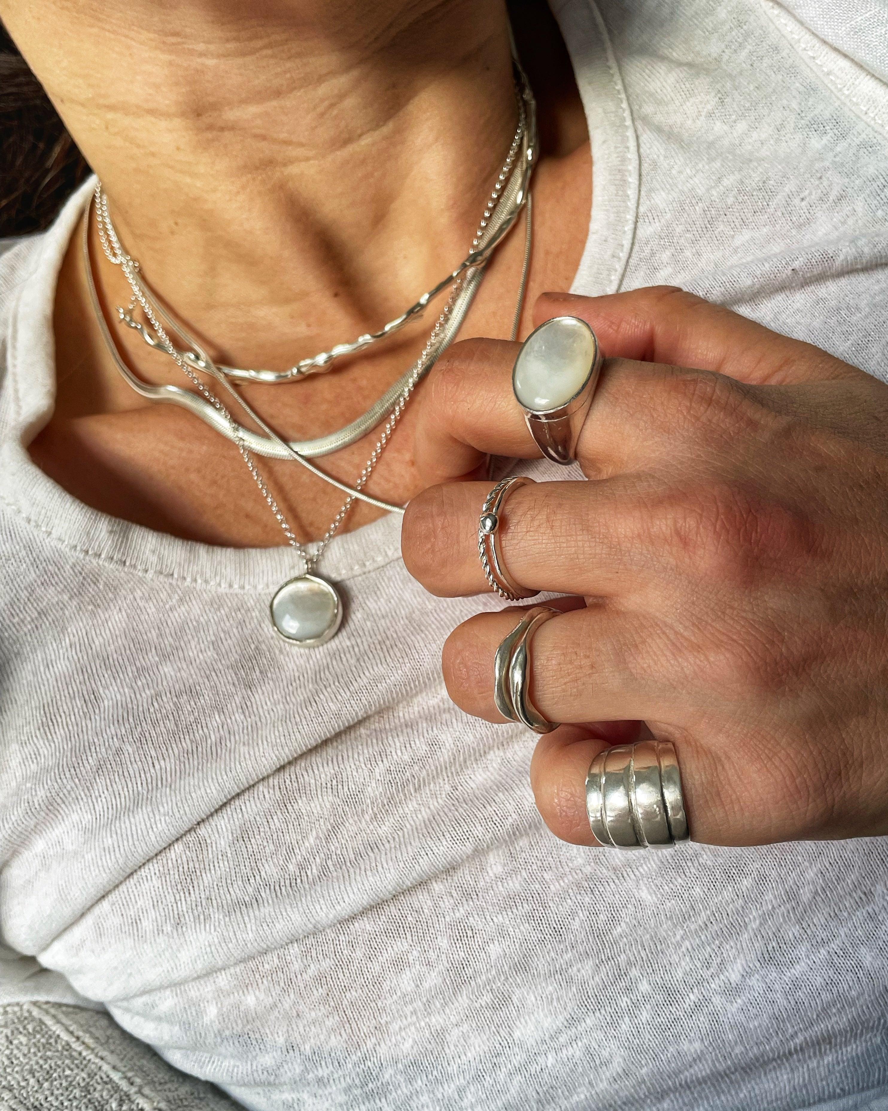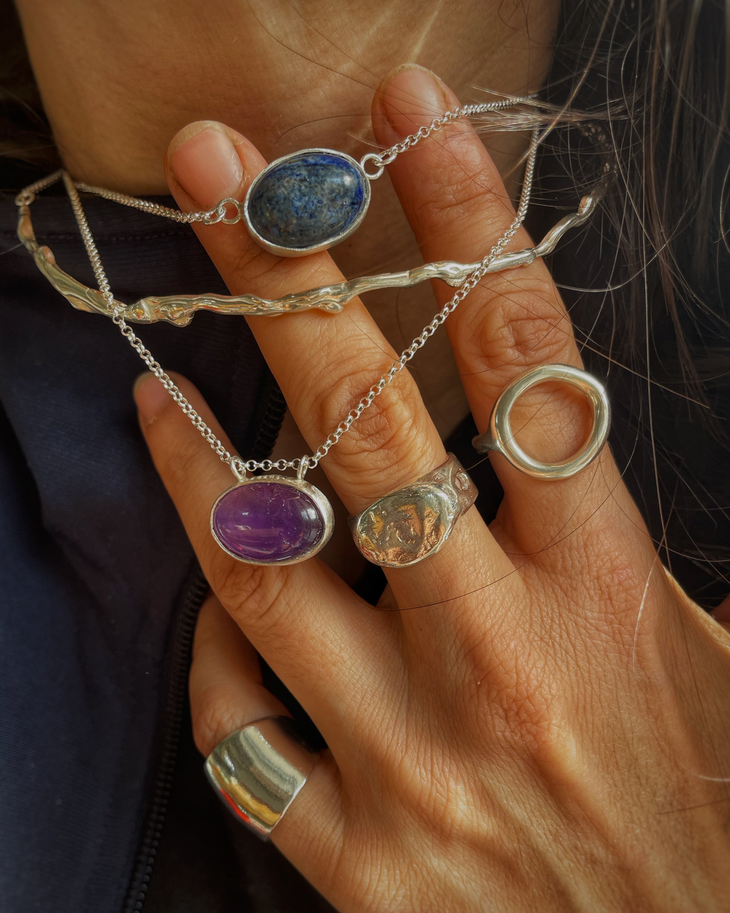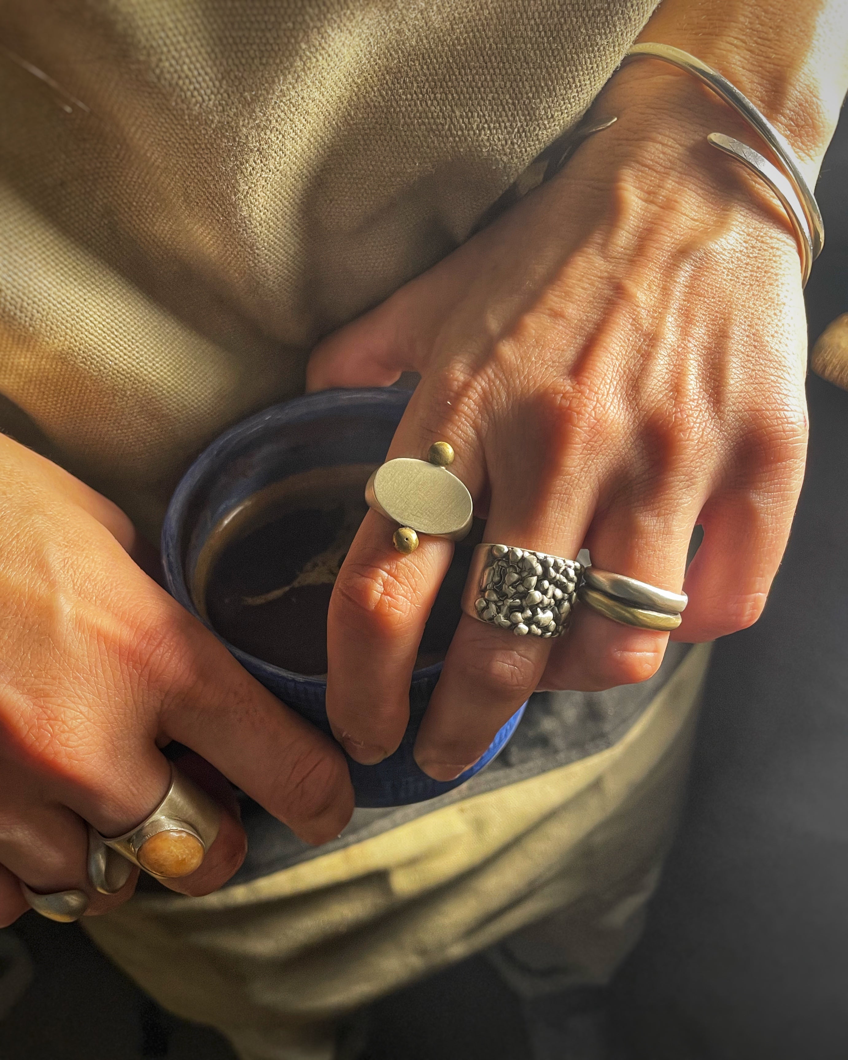 Every piece is shaped by hand, one at a time in a slow-made, sustainable rhythm, allowing each design to form naturally. Please allow 7-14 days for your piece to come to life.