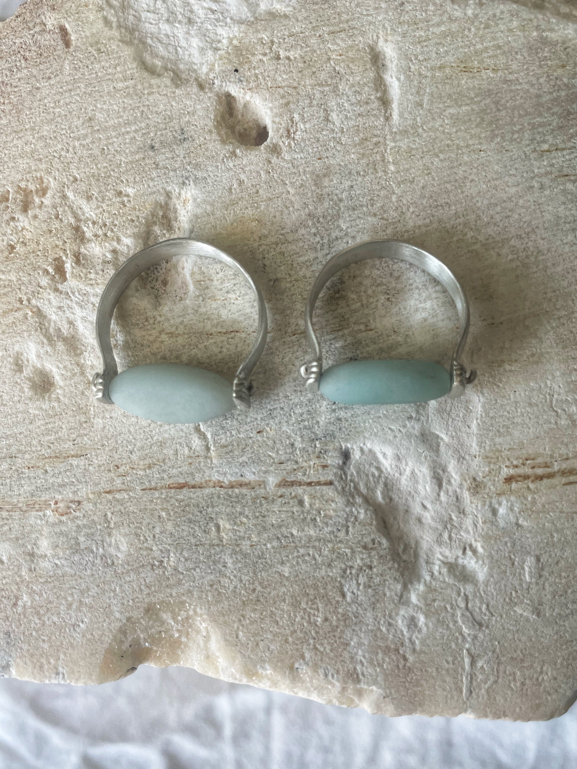 A unique and modern Amazonite ring handcrafted in 925 sterling silver. Known as the stone of hope and harmony, Amazonite brings calming energy and natural beauty to every piece.