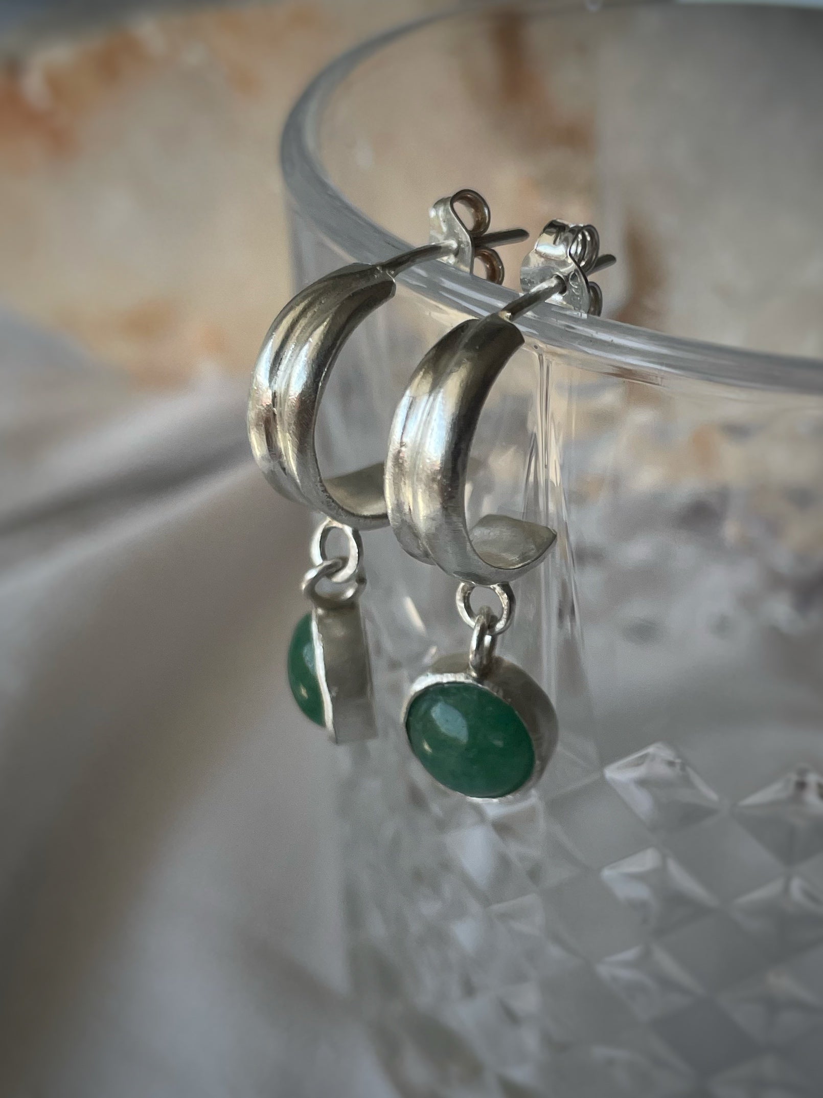 These 925 sterling silver earrings feature green aventurine gemstones, creating a beautiful combination of elegance and simplicity. Perfect for those who appreciate minimalist designs with a touch of color.