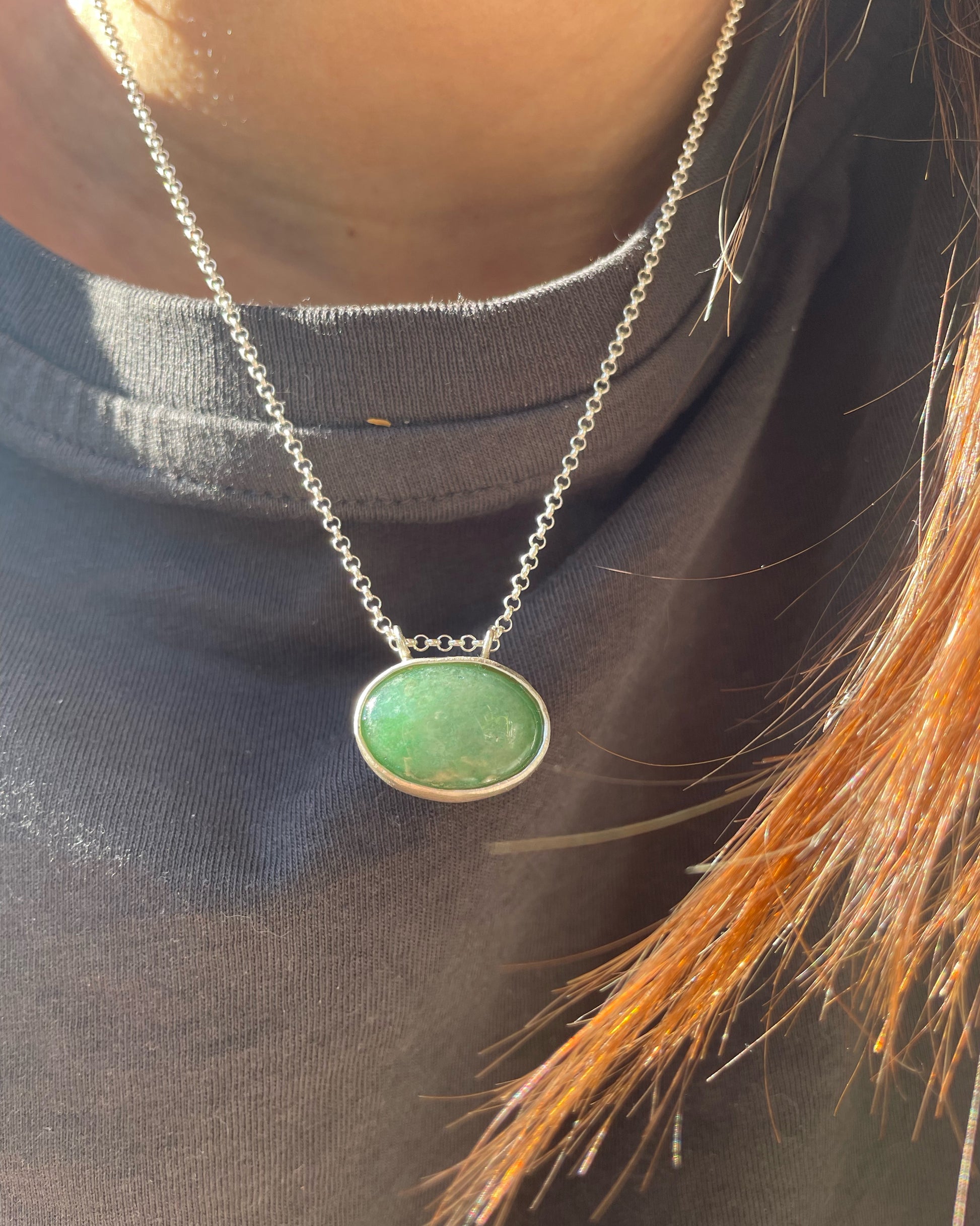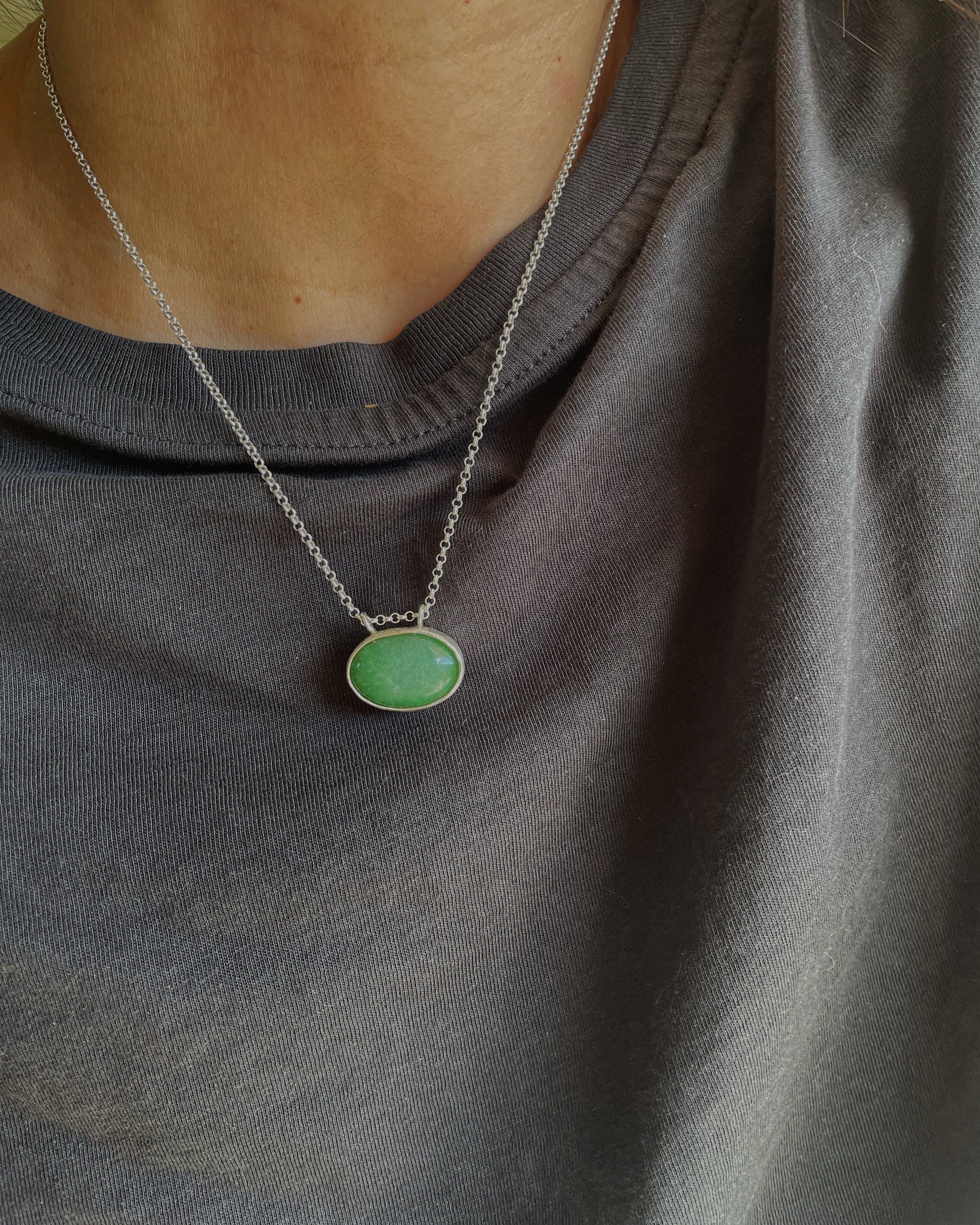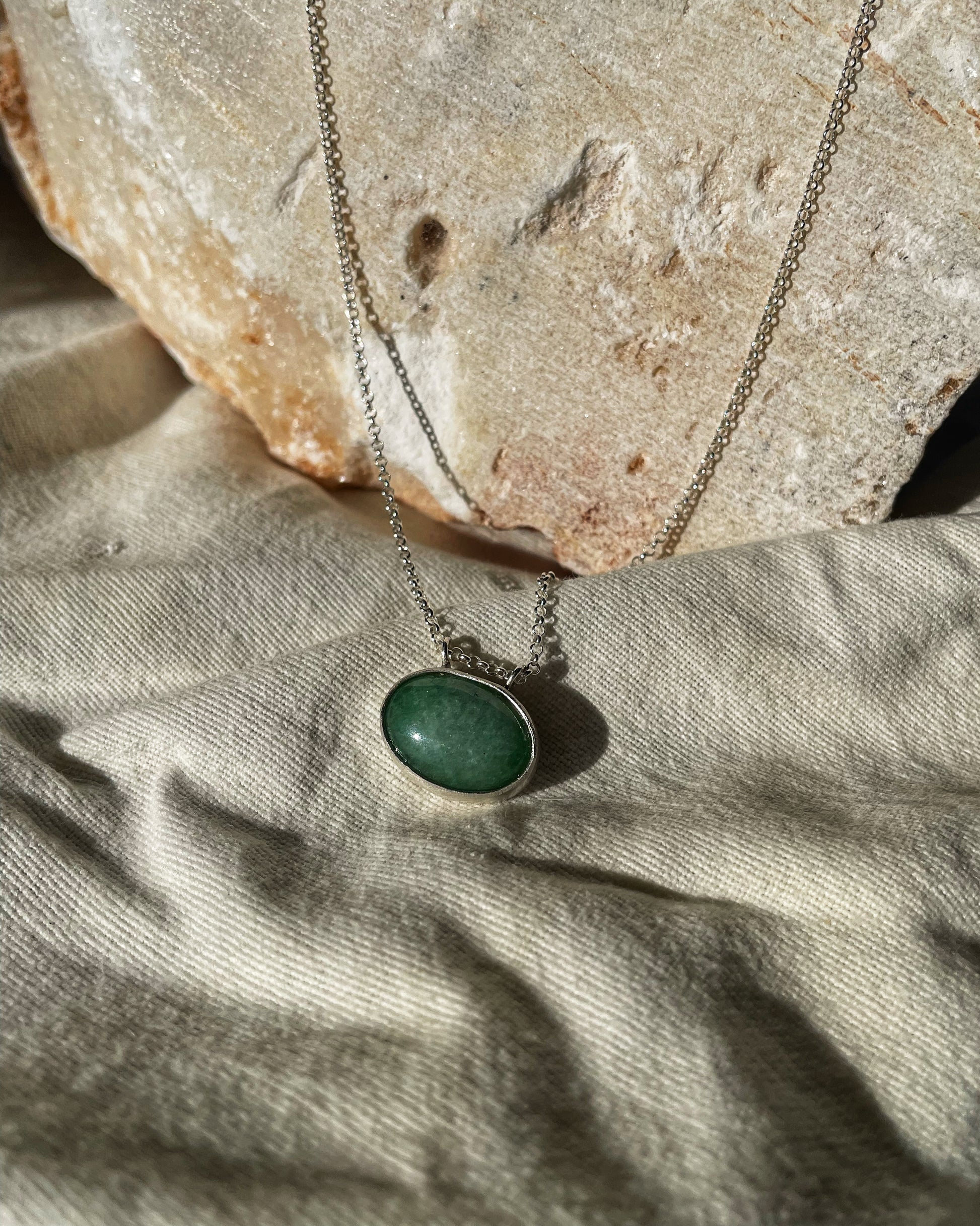 Sterling silver 925 necklace with natural aventurine stone. Handcrafted with a timeless and minimal touch.