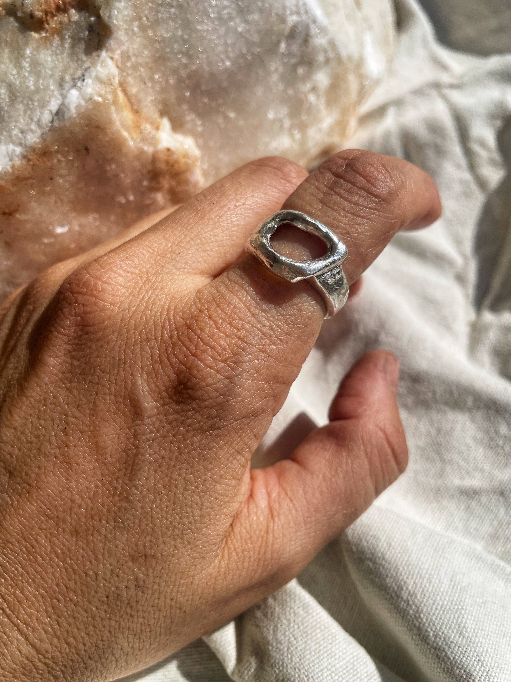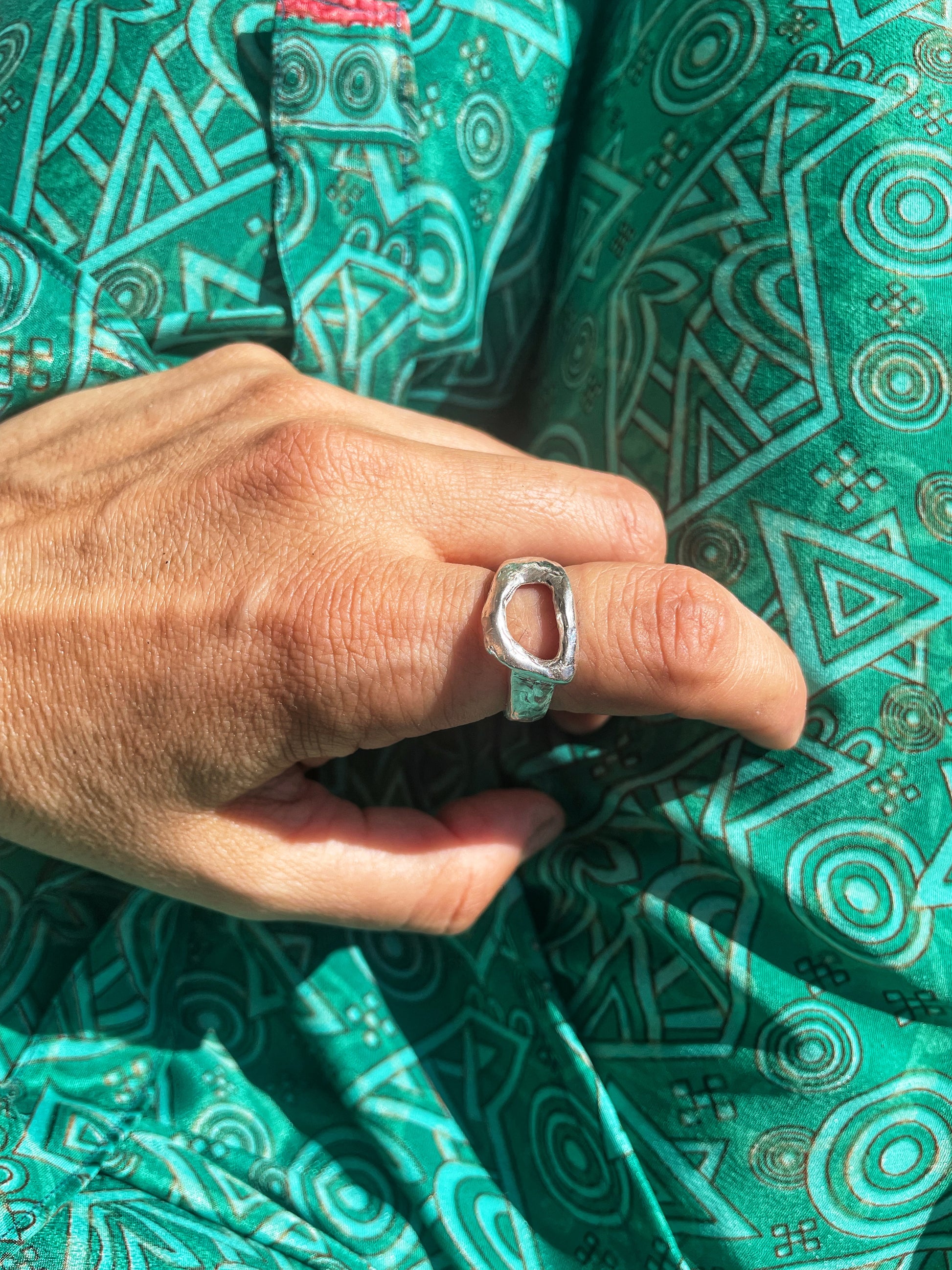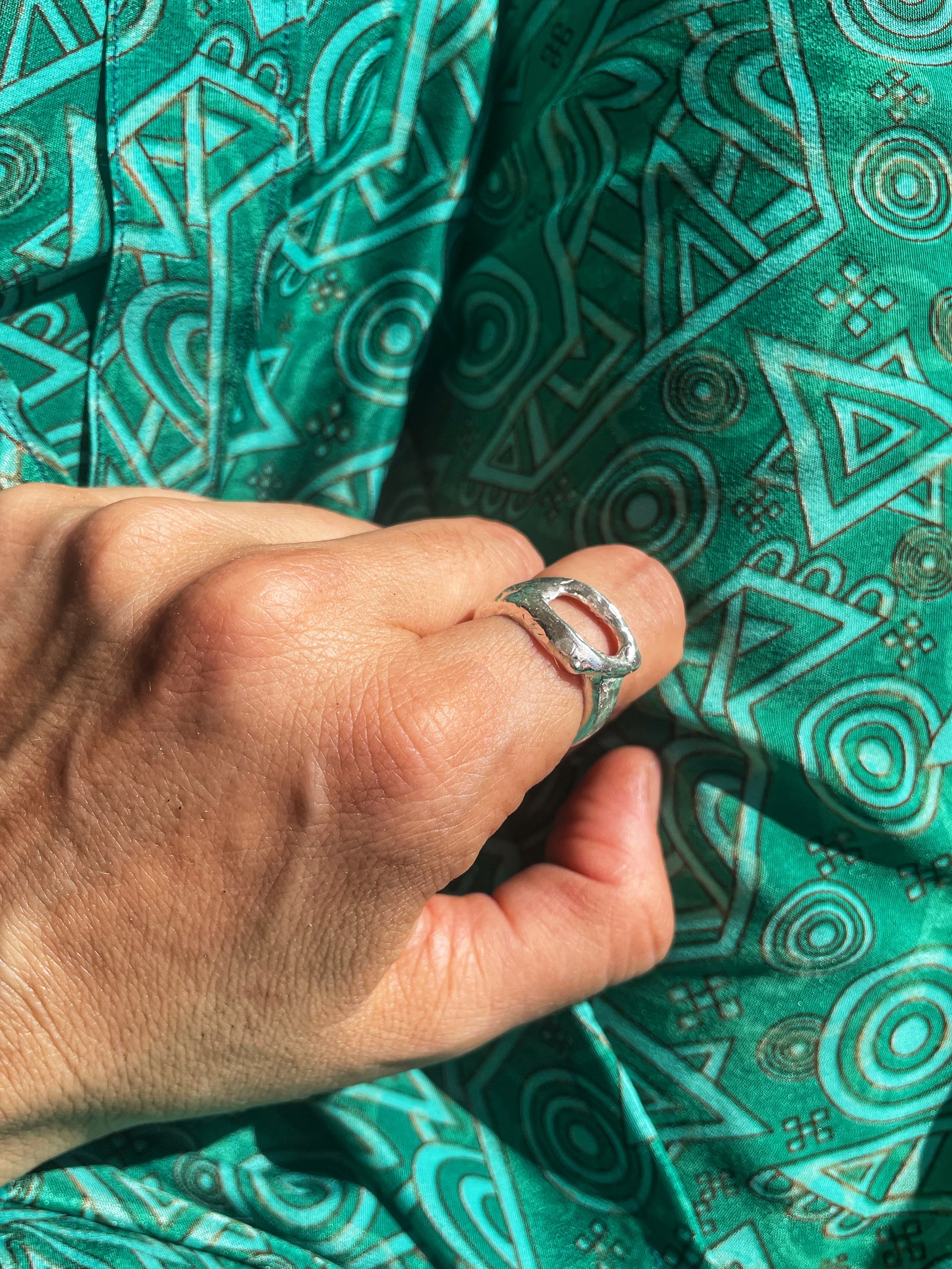 Handmade sterling silver 925 ring featuring an organic open oval shape with a raw, textured finish. This unique statement ring is perfect for lovers of bold, contemporary, and nature-inspired jewelry.