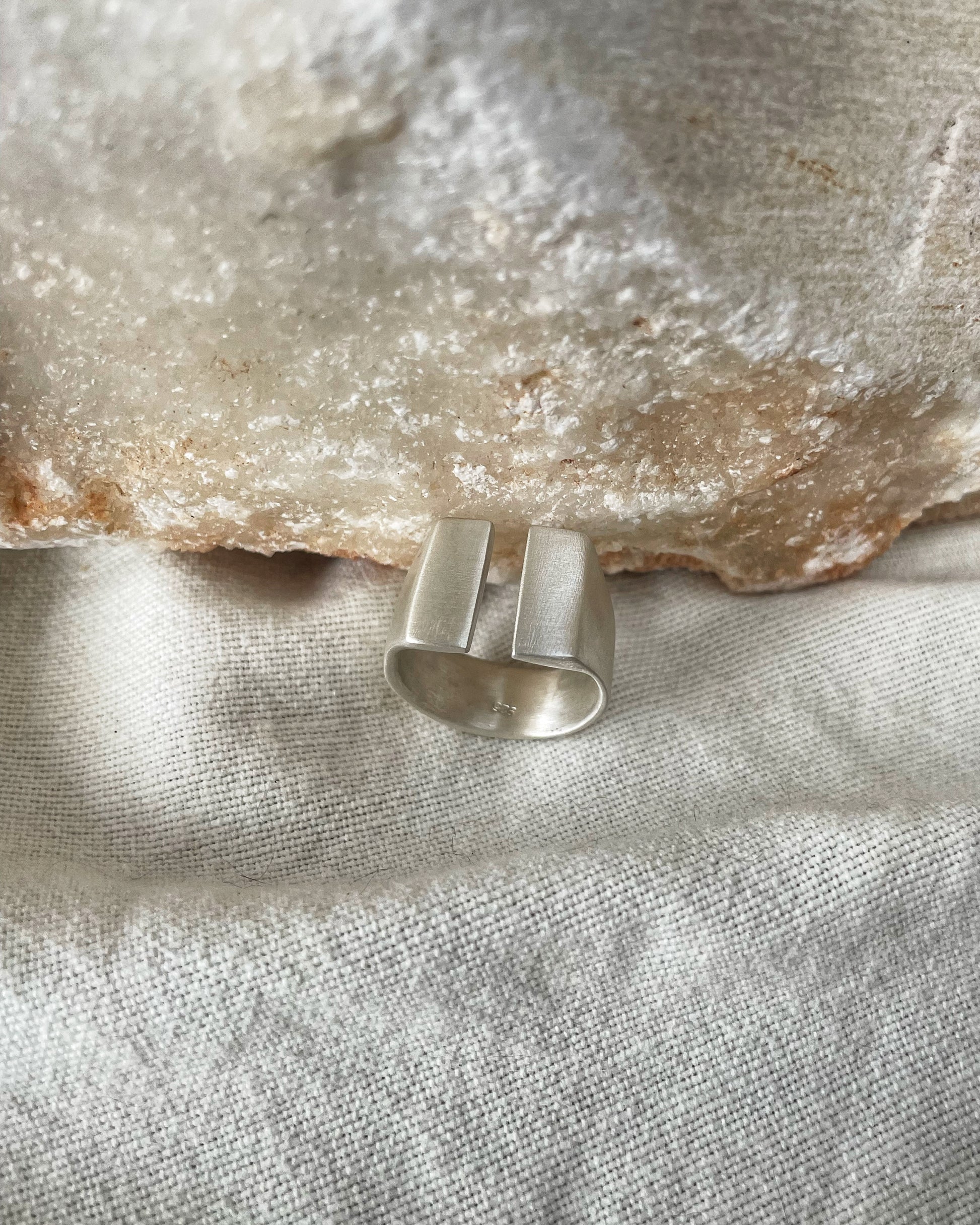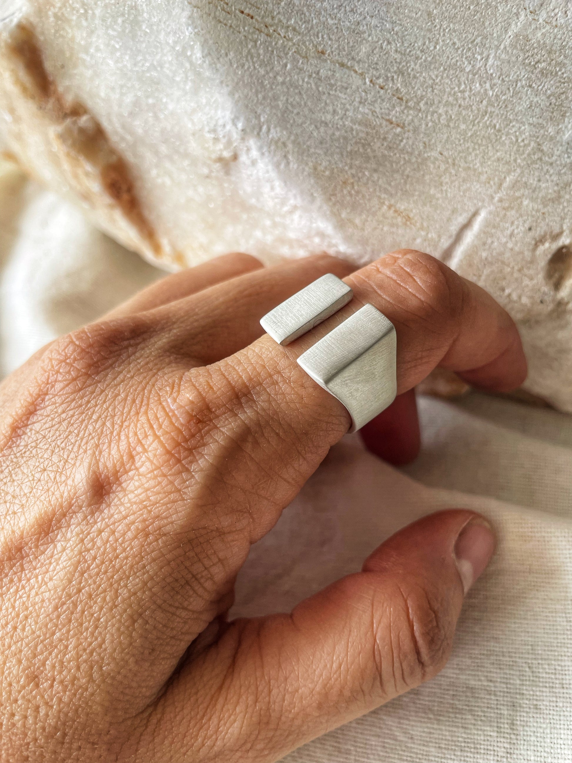 This handmade sterling silver 925 ring features a modern split square design, perfect for lovers of minimalist and contemporary jewelry. Crafted with a soft matte finish, it’s ideal for everyday wear or as a unique statement piece.