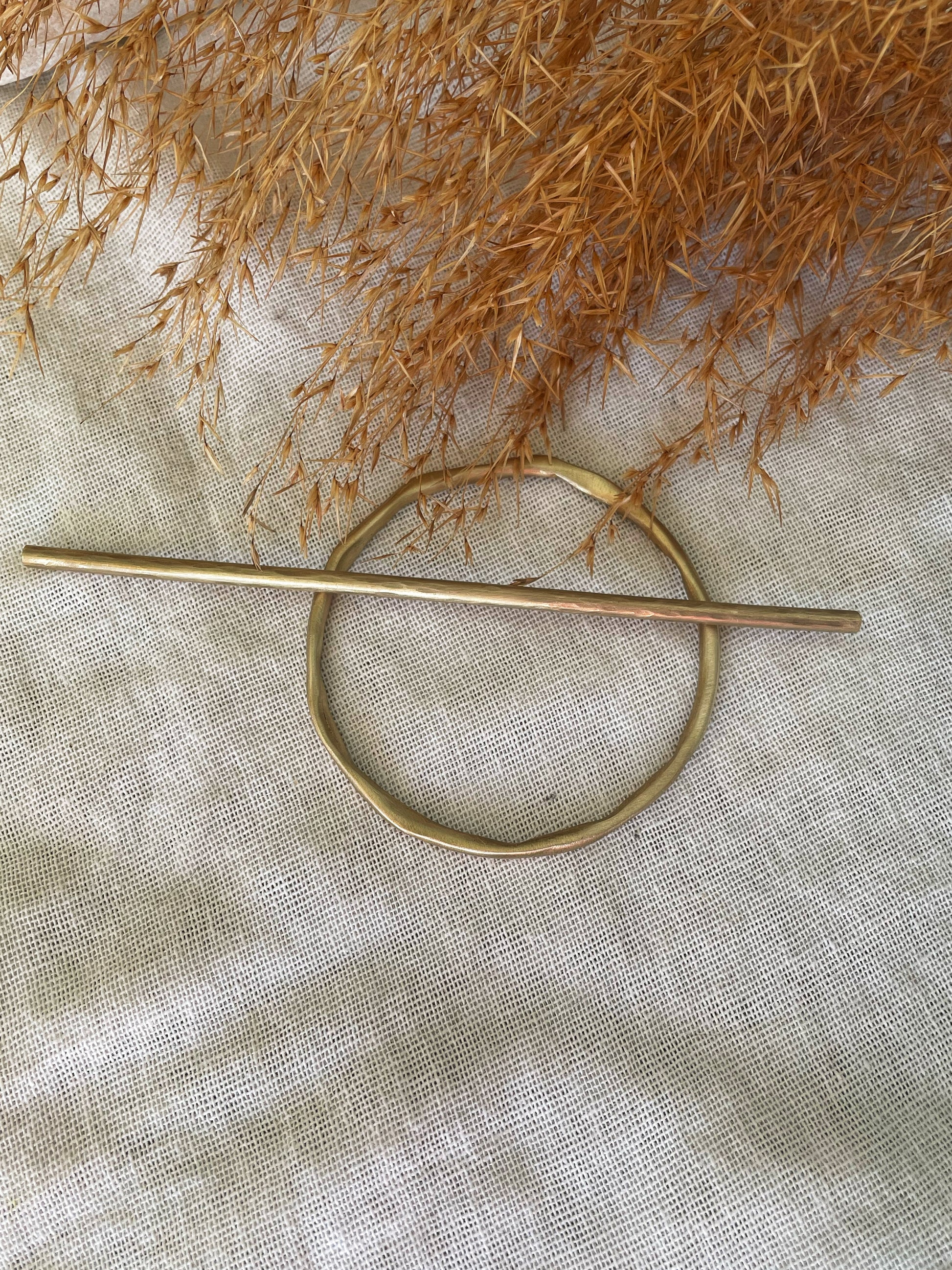 An elegant and minimalist brass hair slide, designed in a sleek geometric circle shape. This stylish hair accessory adds a modern touch to any hairstyle, perfect for both casual and formal looks.