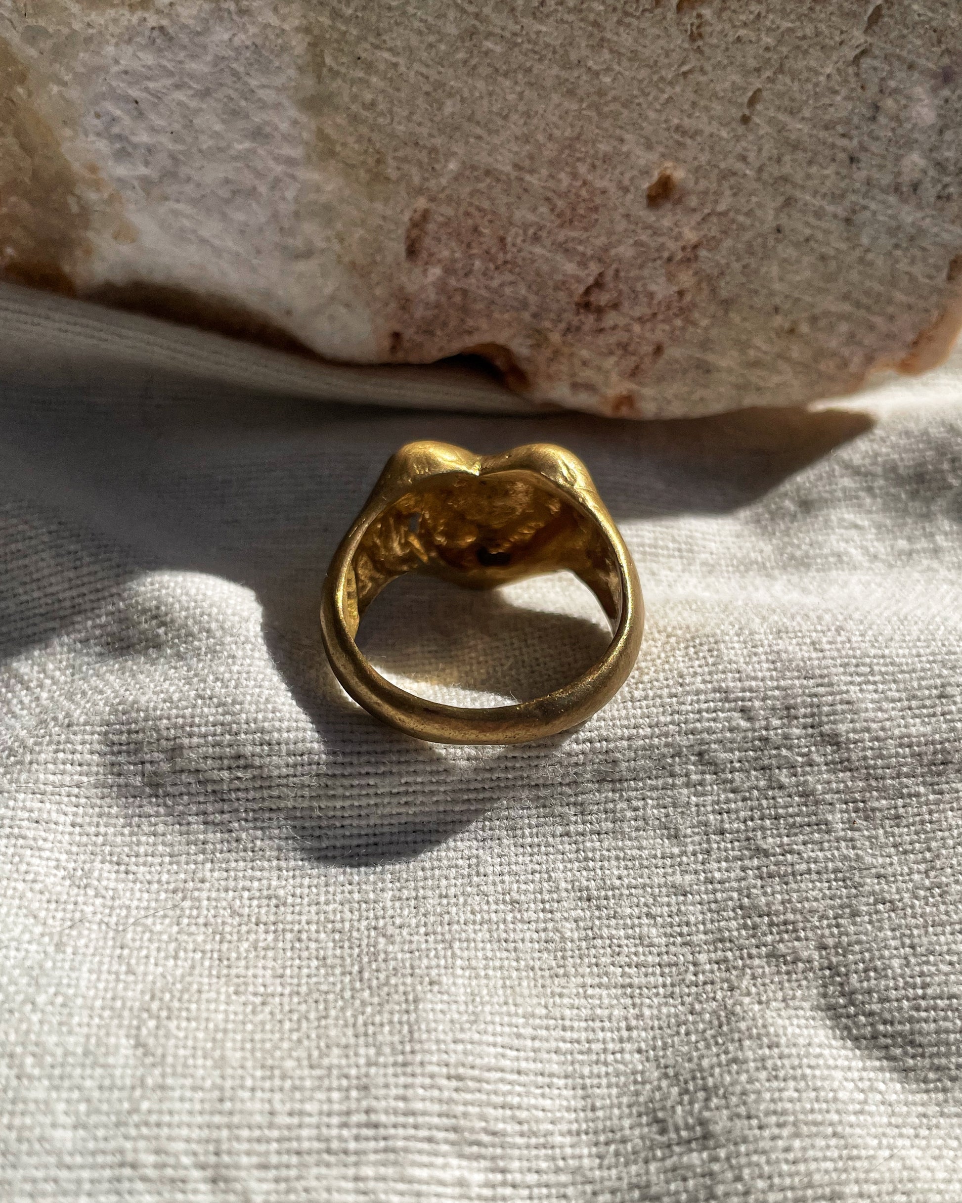 A bold, chunky heart-shaped ring handcrafted in solid brass. Designed with deliberate scratches and an imperfect, organic surface, this statement piece celebrates raw beauty and individuality. Each ring is slightly different, making it a truly unique piece to treasure.