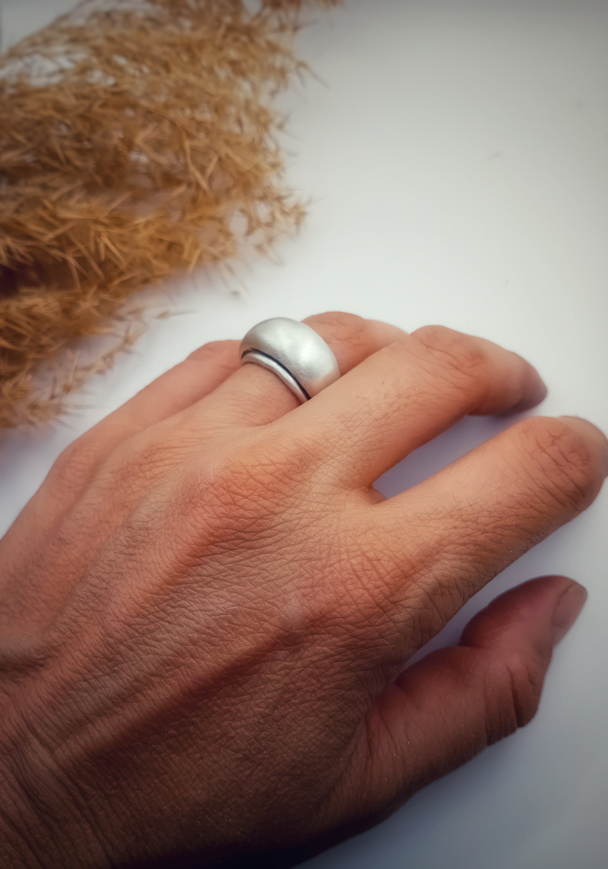 This Bold Dome Ring is a striking statement piece, crafted from solid 925 sterling silver. With its chunky, minimalist design, it offers a modern yet timeless look, perfect for everyday wear or special occasions.