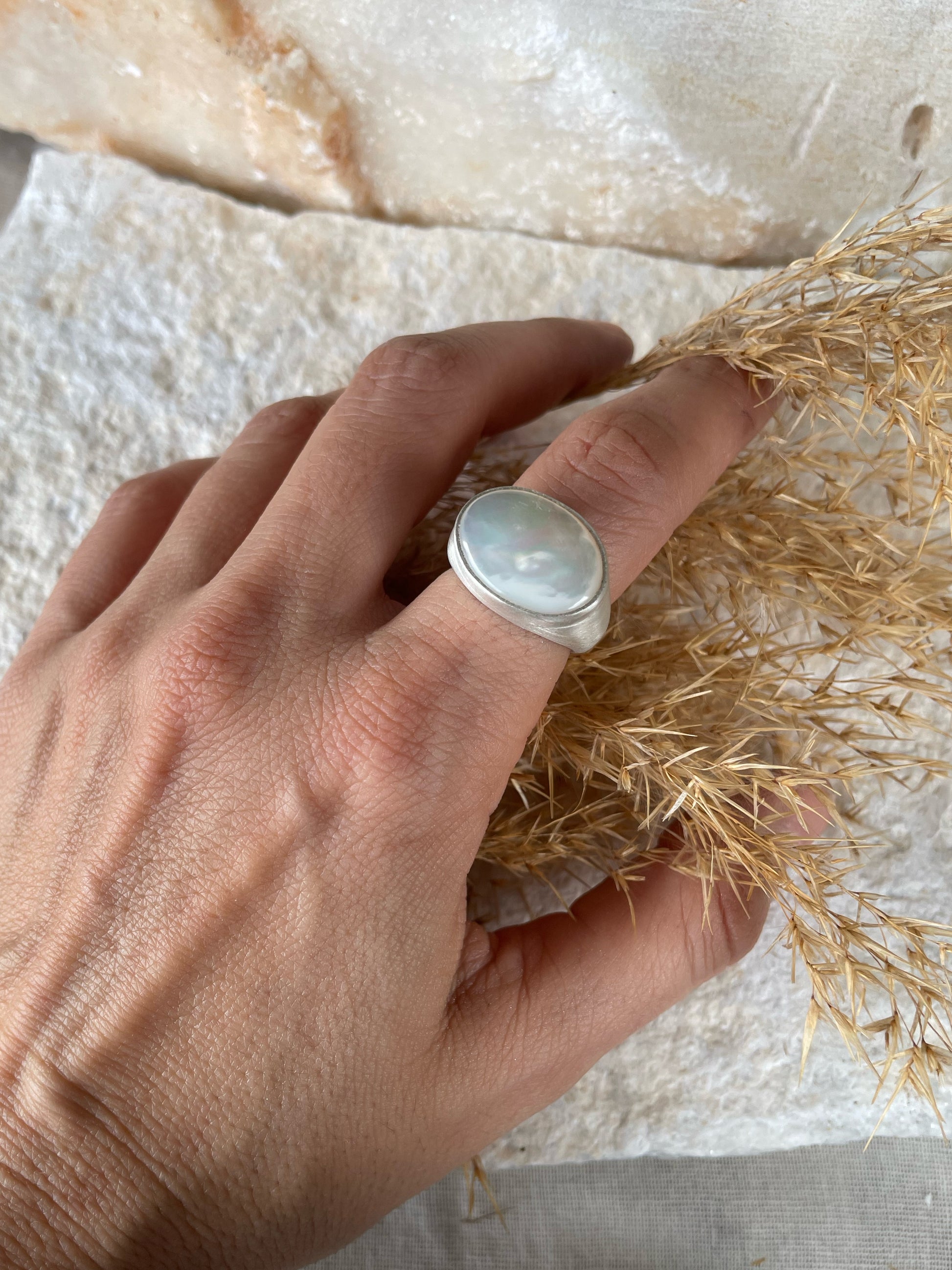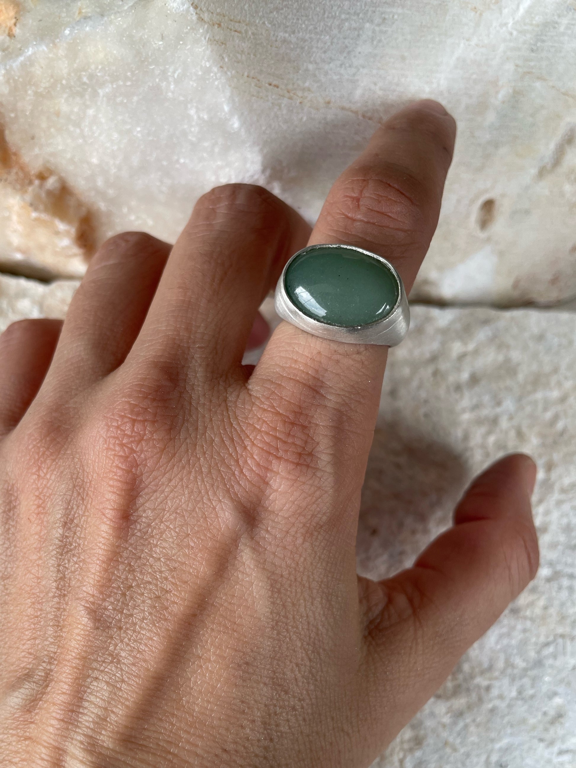 This Sterling Silver 925 Statement Ring is a bold and eye-catching piece, featuring your choice of Aventurine, Mother of Pearl, Lava Stone, or Sodalite. Handmade with care, this chunky cocktail ring is perfect for those who love boho and gemstone jewelry.