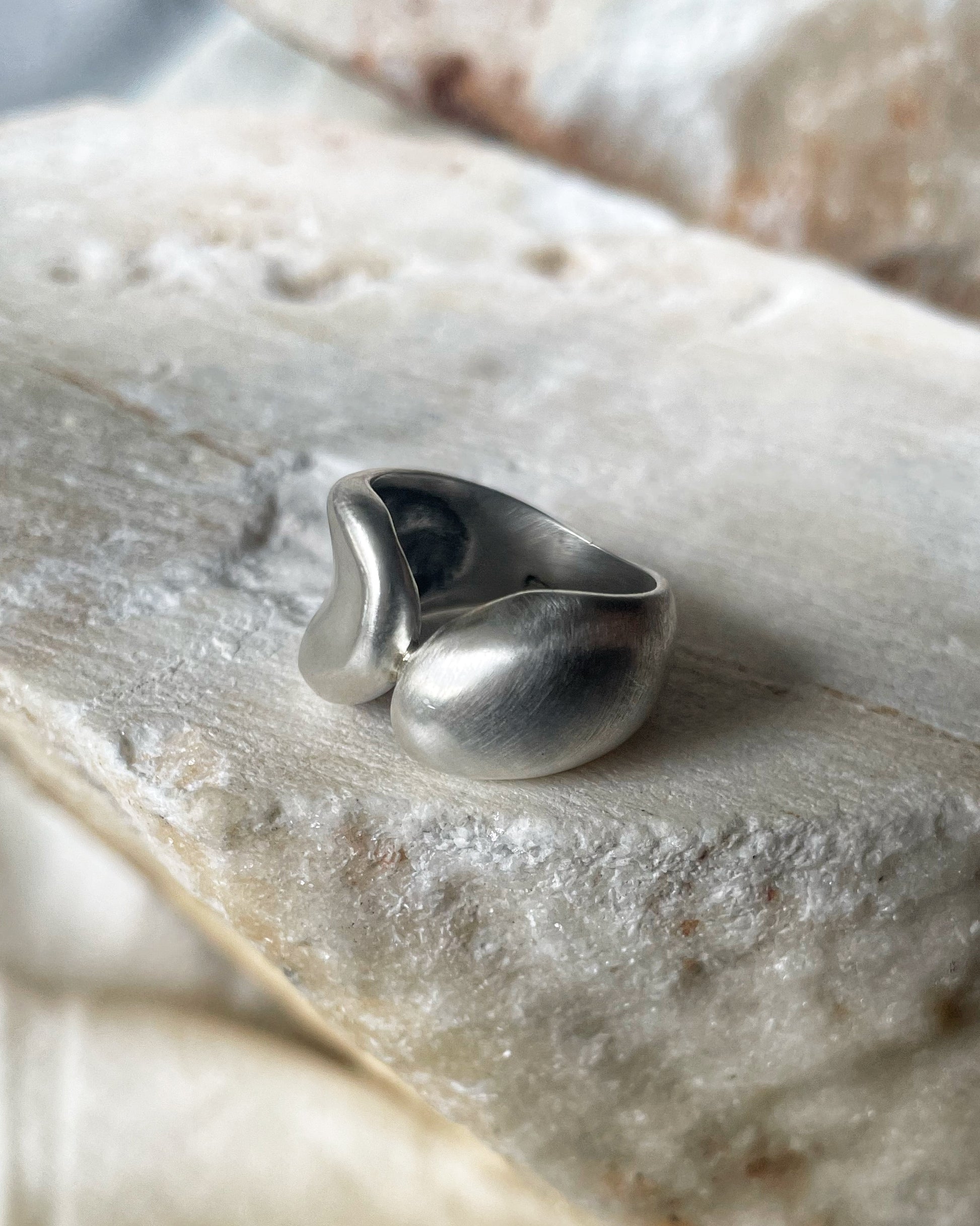 A striking handmade sterling silver 925 ring featuring two organic, pebble-like forms. Inspired by nature’s smooth shapes, this statement piece is both bold and effortlessly minimal. Ideal for layering or wearing solo, it makes a timeless addition to your jewelry collection.