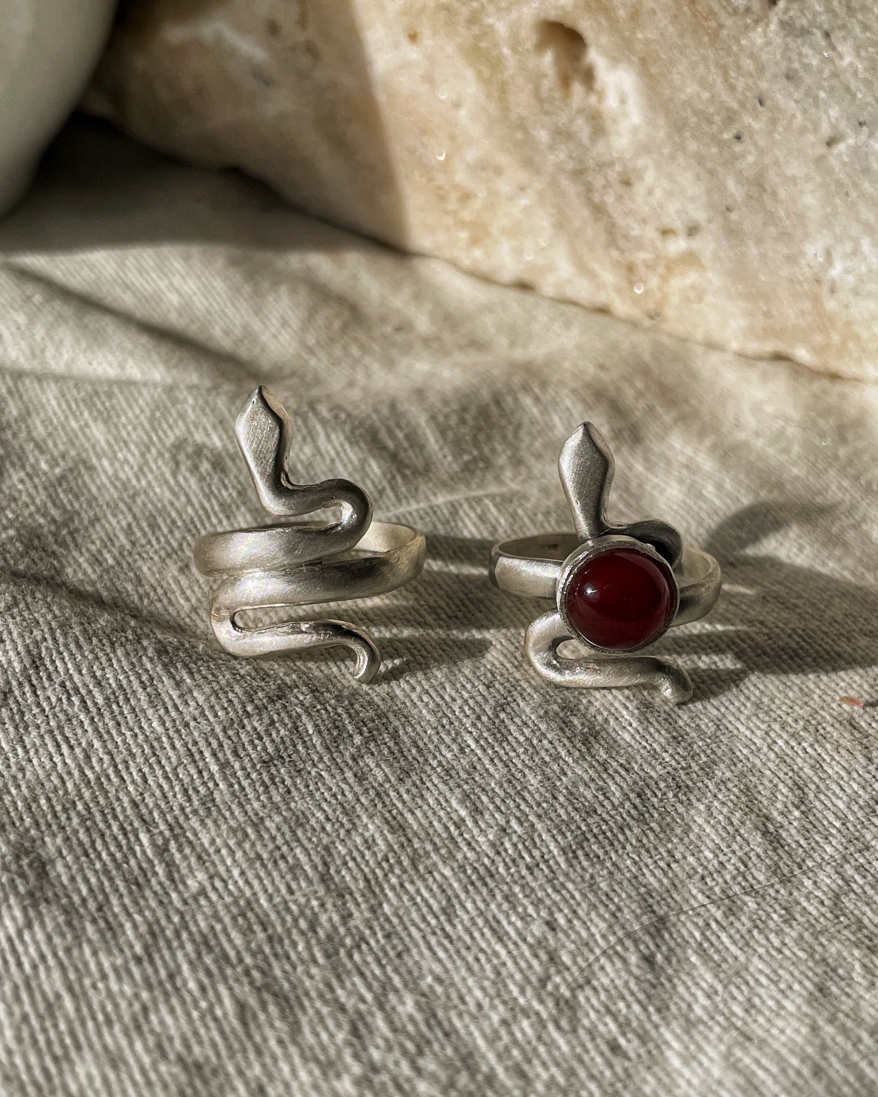 The serpent has been a powerful symbol across ancient cultures. It represents rebirth, healing, wisdom, and the cyclical nature of life. Its ability to shed its skin has long been associated with transformation, renewal, and inner awakening. When paired with a red garnet stone, the symbolism deepens—evoking vitality, creation, and the primal forces of Genesis.