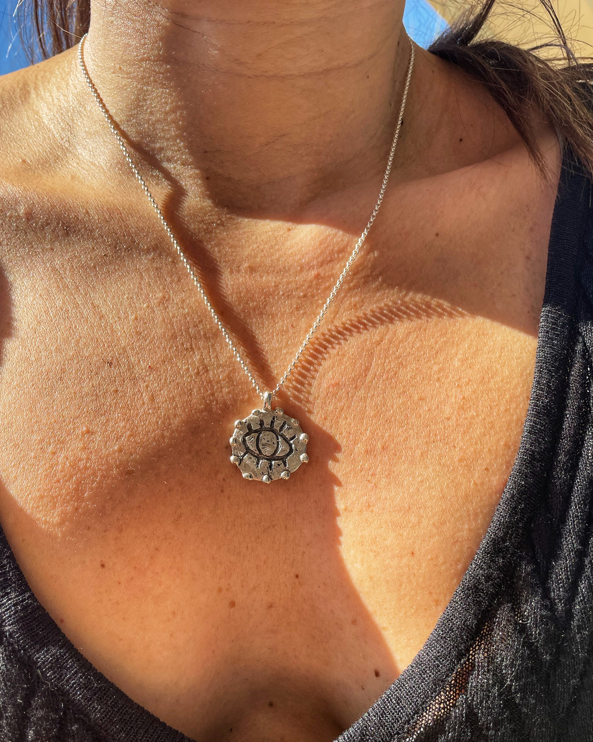 Make a bold statement with this unique handcrafted sterling silver 925 eye pendant, carefully engraved by hand with an eye symbol, carrying meaning and protection. Available in your choice of matte or shiny finish, this unique pendant is designed to stand out and elevate any look.