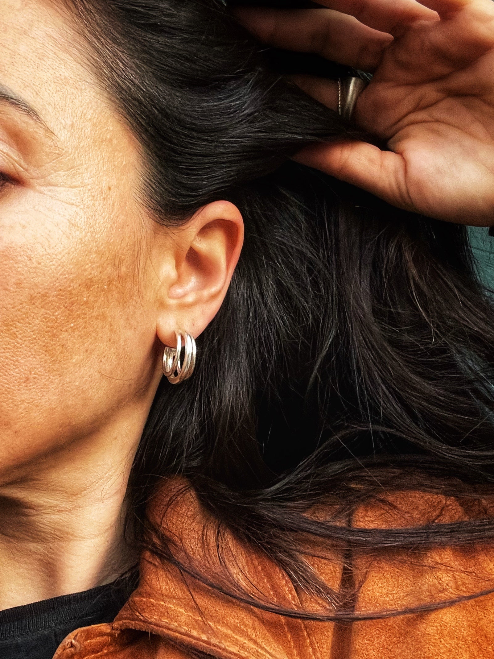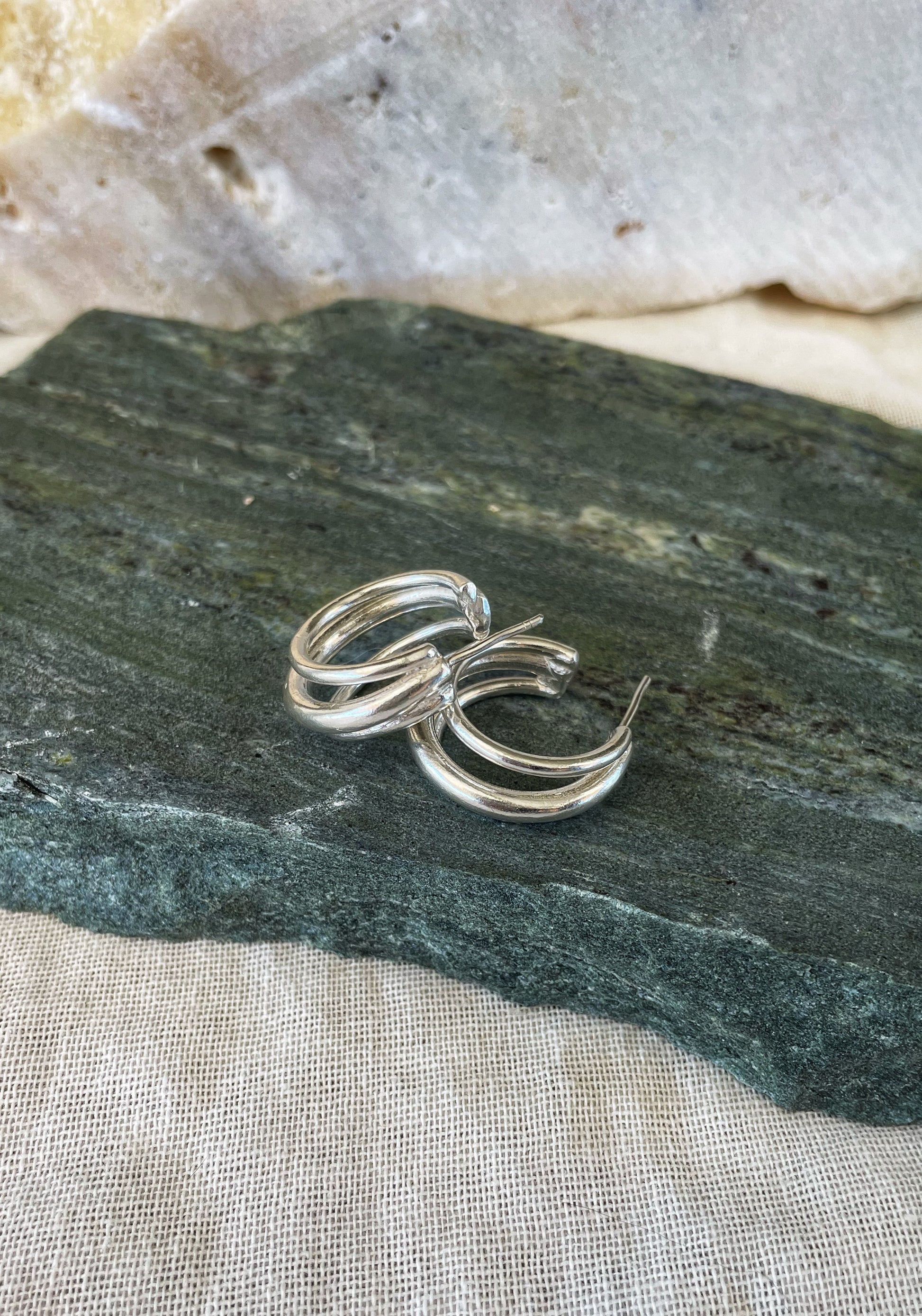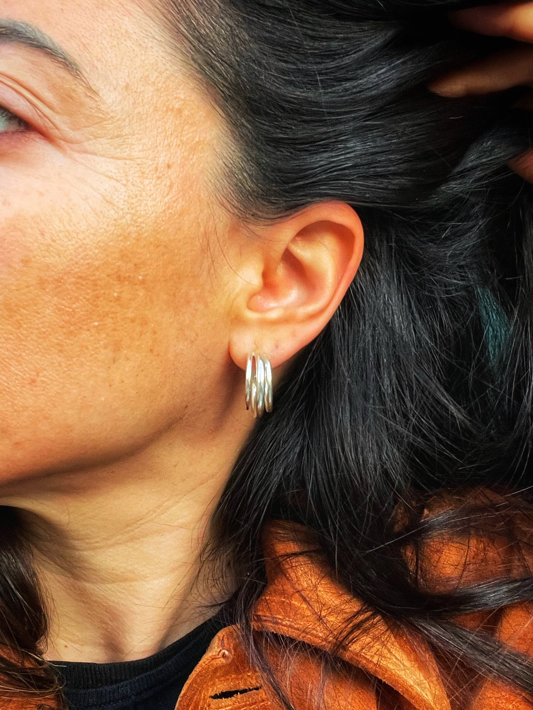 - Design: Three-in-one hoops for a modern, chunky statement