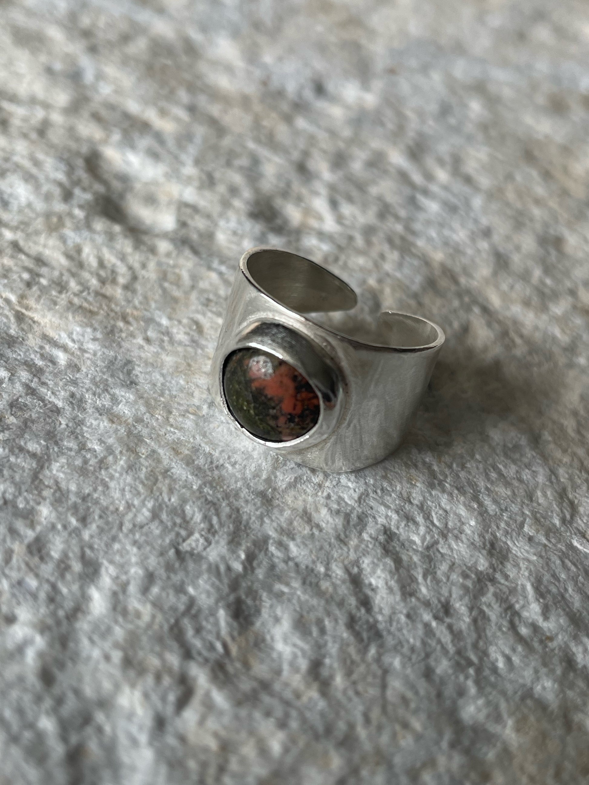 This beautiful handmade Unakite silver ring is a unique and elegant addition to any jewelry collection. Crafted with care, the ring features a stunning Unakite gemstone, known for its earthy green and pink hues, symbolizing balance and emotional healing.